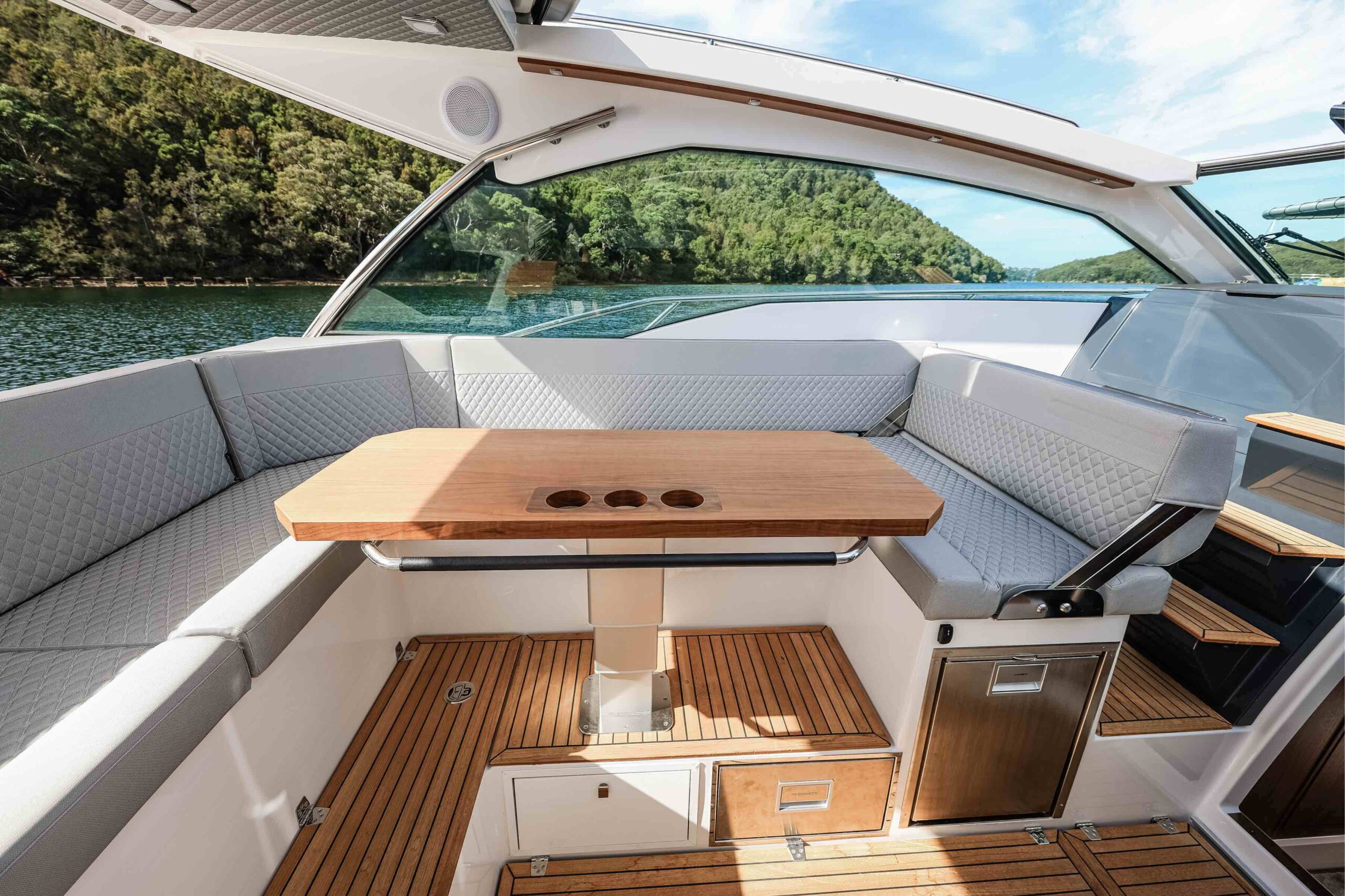 Every Flipper boat has a unique Speedhull design that enables higher speeds and sporty driving experience under all conditions. The special double frame construction made with the vacuum technology makes the hull extremely stiff – which again contributes to excellent drivability and less noise in the cockpit.