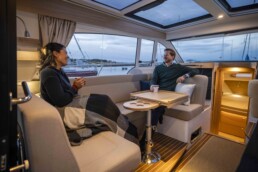 Model 365 posiada duże, zintegrowane miejsce do opalania na pokładzie dziobowym. Na pokładzie rufowym znajduje się sofa w kształcie litery L, zapewniająca większy komfort dzięki głębszemu siedzisku i lepszemu podparciu pleców, a duży stół pozwala cieszyć się wspólnymi posiłkami w komfortowych warunkach.