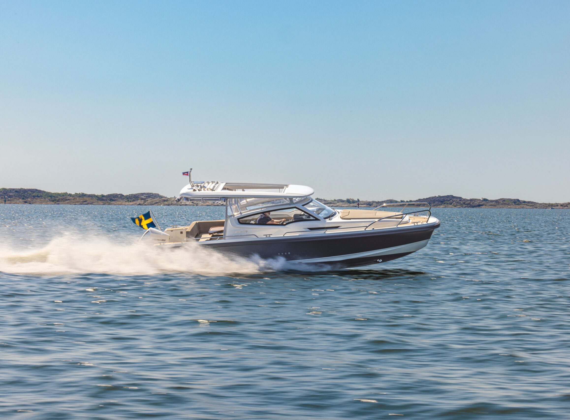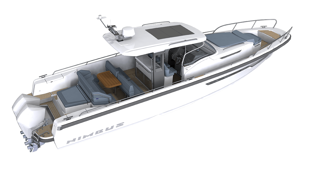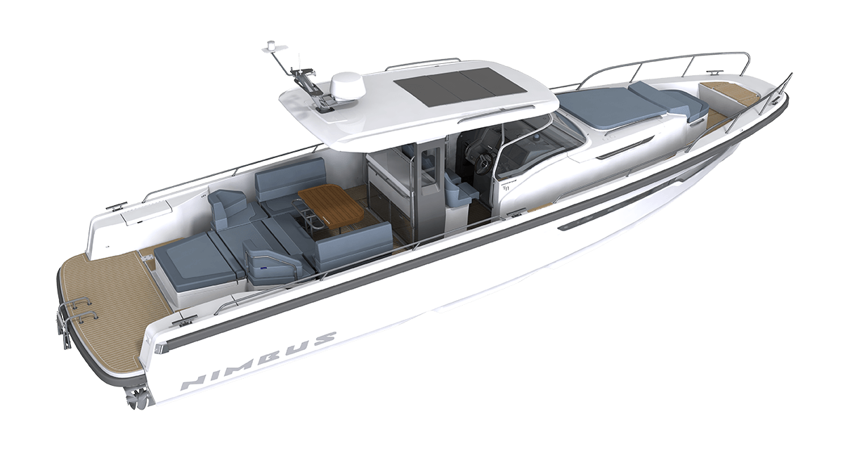 Nimbus C9 to łódź dla koneserów współczesnego skandynawskiego designu – osób ceniących przemyślane rozwiązania i inteligentną funkcjonalność. Przestronny kokpit zapewnia obfite naturalne światło dzięki dużemu, przesuwanemu szklanemu dachowi oraz nowoczesnemu i wygodnemu stanowisku sternika.